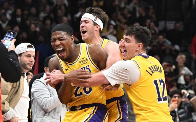 东契奇返回斯洛文尼亚去迎接自己第二个孩子的出生,湖人只能以残阵开启三连客之旅,首个对手就是高居东部第三的猛龙,历经四节鏖战,湖人凭借八村塁的三分绝杀,艰难在丰业银行球馆全身而退、带走胜利。里夫斯延续了本赛季当卢卡缺席时他就会暴走的疯狂表现,交出了44分5篮板10助攻的成绩单,成为球队取胜的第一大功臣。而詹姆斯却表现得有些糟糕,全场运动战17投仅4中,仅仅得到8分6篮板,但却送出了11次助攻,其中,也包括了最后奠定胜局的致胜一传。